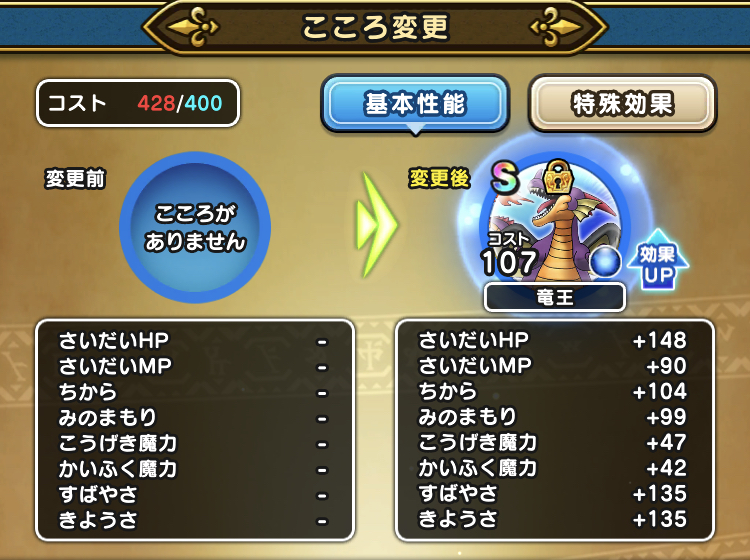 竜王には特殊効果で、ターン開始時にMPを3回復するがついてますよね!これとバトルレックスの、戦闘終了時にMPを6回復するを併用してみました。