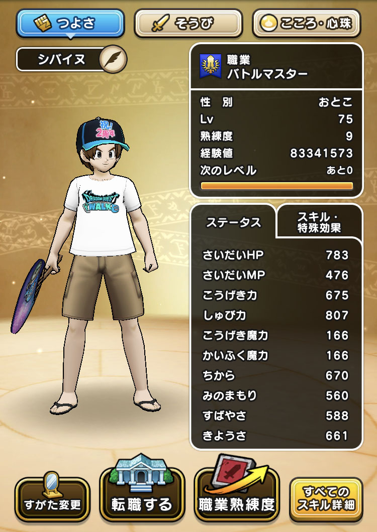 ステータスに関しては、さいだいHPとしゅび力はまあまあ高いですね。すばやさがちょっと低いかな?きようさがムダに高い笑。