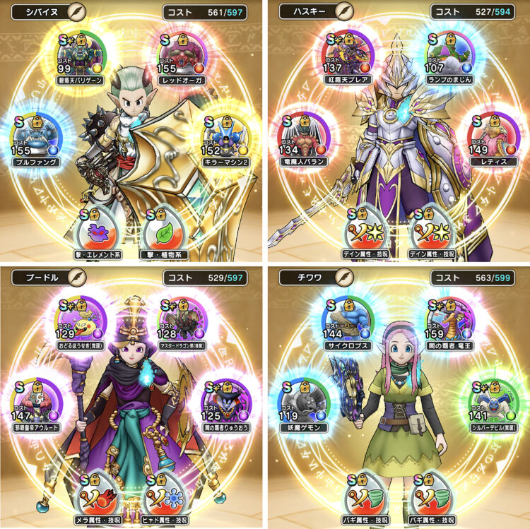 今回は本当に色々と悩みました…。らいめい、カルベロ、朧がない中での周回効率や、乱入してくる血染めの魔剣の対策も考えてのパーティ構成。