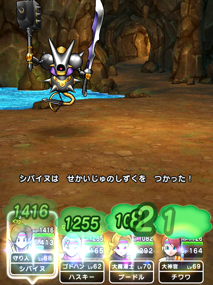1体になると、見慣れない技が発動!無属性ぎんがとメドローアがヒャド属性にされてしまいました!